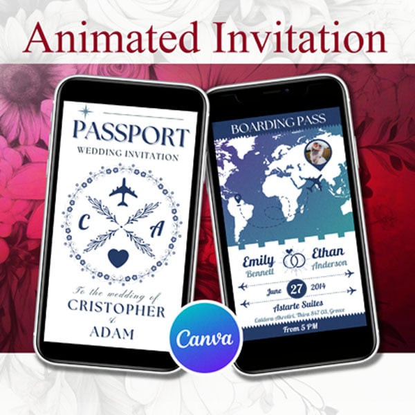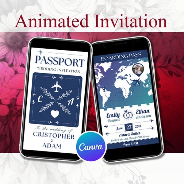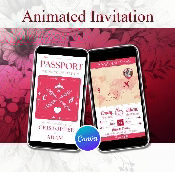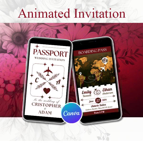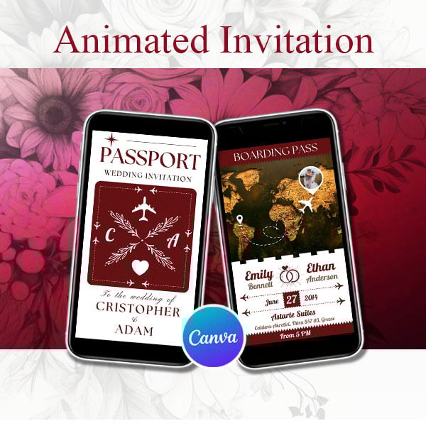 Red Burgundy Color_ Cover Page 1_ Animated Wedding Invitation Passport Video Canva